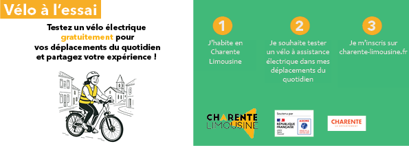 La Communauté de communes de Charente Limousine souhaite développer l’usage du vélo dans les mobilités du quotidien. Dans ce cadre, et à titre expérimental, elle met à disposition gratuitement des usagers, sur demande et dans la limite des vélos disponibles, un vélo à assistance à électrique pour une durée d’un mois.
