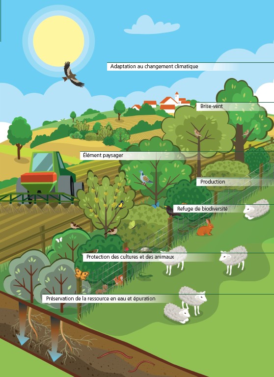 - Régulation du climat: la haie régule la température et stocke le carbone